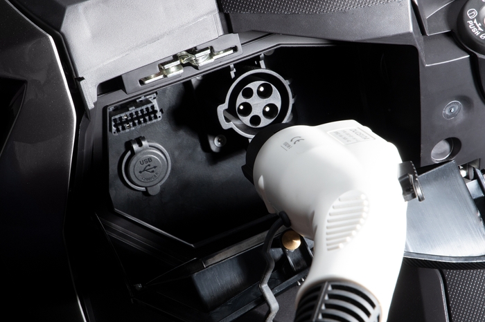 国際規格である「SAE J1772ソケット」を装備。200Vの充電機器に接続し、約4.4時間でフル充電することが可能です。急速充電ソケット(CHAdeMO)もオプションとして準備中です。