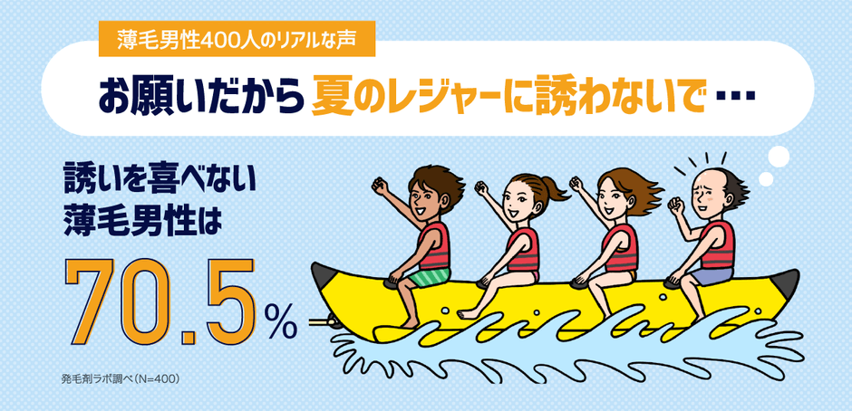 薄毛男性400人のリアルな声 「夏のレジャー、誘いを喜べない薄毛男性は70.5%」 に関する調査を実施 ~発毛剤ラボがデータ公開~