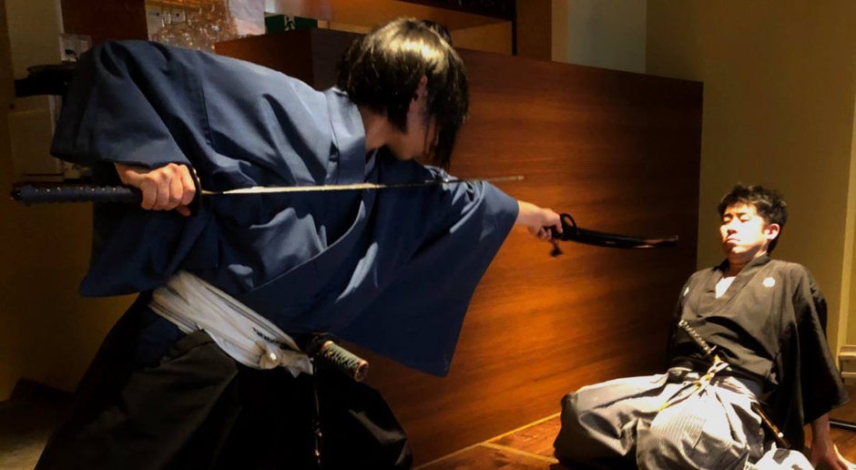 この店舗は、渋谷道玄坂のうえ、30年前までには花街で、料亭文化、芸者文化が栄えた円山町の入り口にあります。旅籠(はたご:主に江戸時代に発達した宿の名称)をイメージした外装、伝統的な日本の屋内を思い出させるゆったりとした内装でくつろいでいただきながら、当時の日常の風景のなかで、剣を振ることができる本物の侍を間近に体験できます。