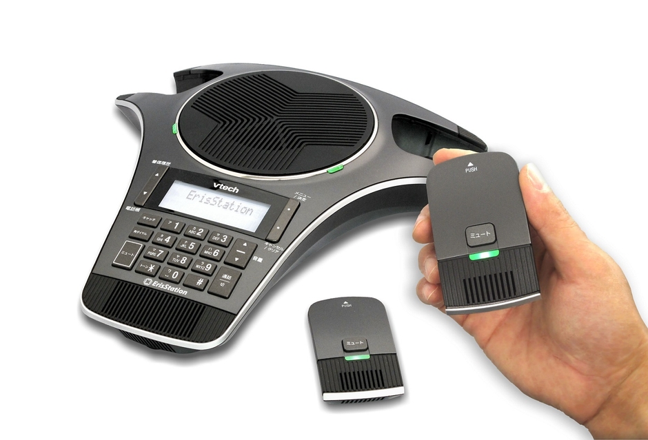 既に販売中の『エリスステーション』シリーズの他モデルと同様、VTech独自のOrbitlink(TM)(オービットリンク)ワイヤレステクノロジーにより、2個のワイヤレスマイクと1個の本体内蔵マイクで同時に会話できます。それぞれのマイクの音声をデジタルミキシング技術で統合し、最適なバランスに自動調整することにより、参加者全員の声を通話相手に届けることができます。