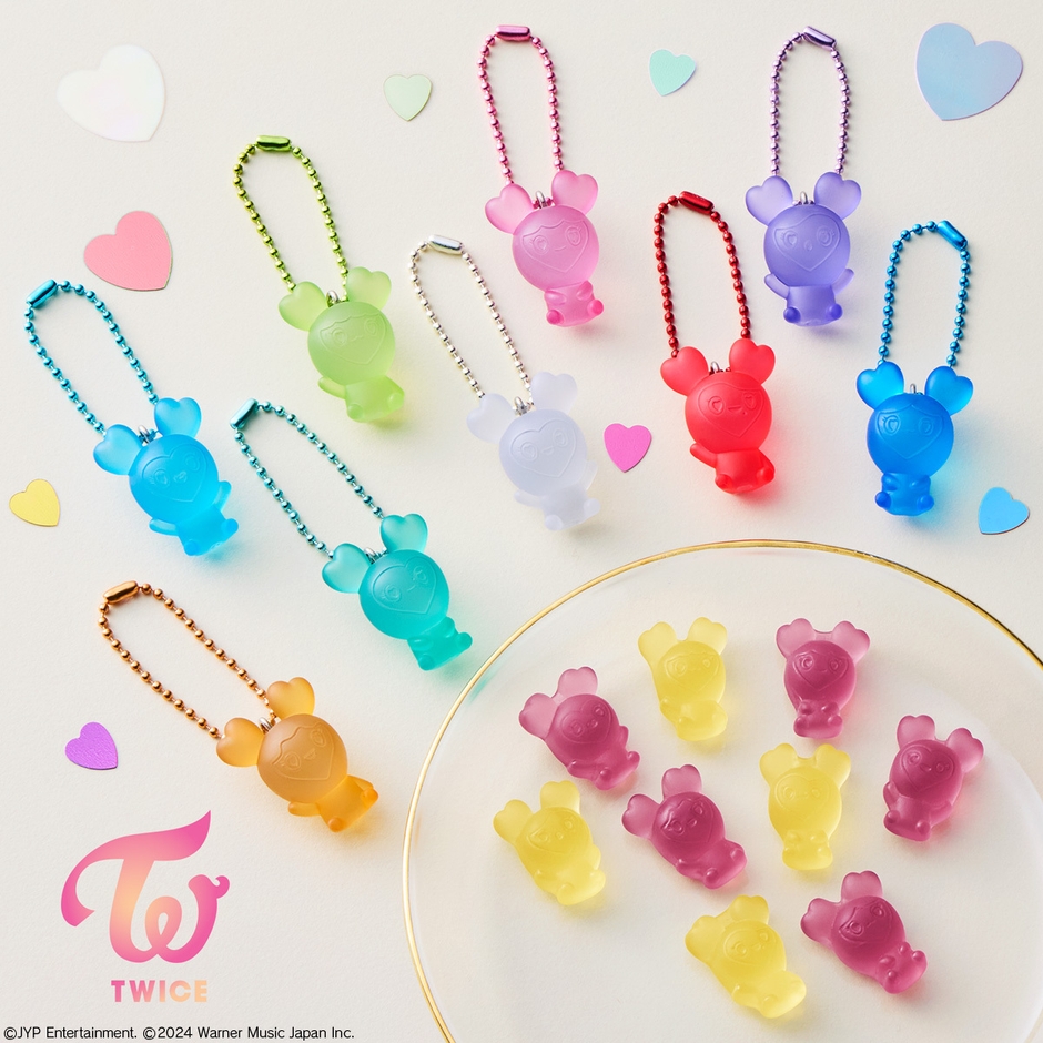 『TWICE』の公式キャラクター『TWICE LOVELYS』(読み:ラブリー)のマスコットチャーム付きグミです。