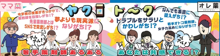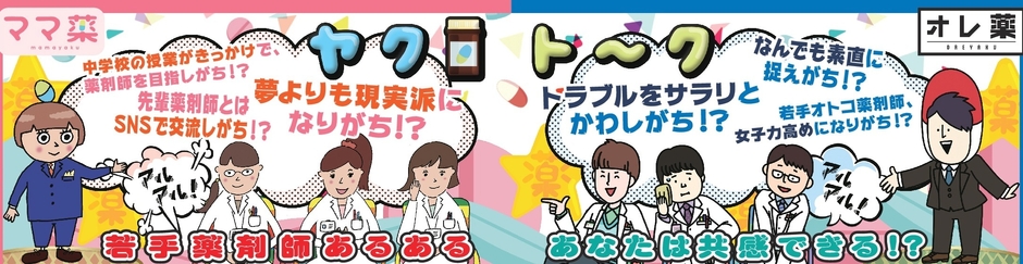 サイトでは、以上の内容もふまえた座談会の全貌を公開中。普段の会話ではなかなか踏み込めない話題も話し合ってもらいましたので、若手薬剤師が同年代の話に共感したり、先輩薬剤師が若手の意外とアツい気持ちを知ることができるコンテンツとなっています。