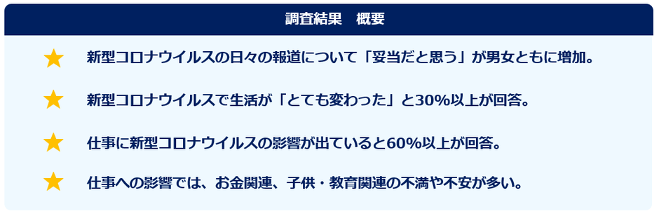 1:新型コロナウイルスの日々の報道について「妥当だと思う」が男女ともに増加。(図1)