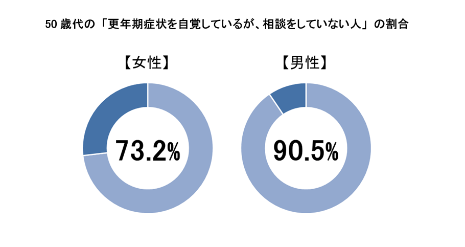 また、50歳代では女性の73.2%、男性の90.5%が「更年期症状を自覚しているが、相談していない」という調査結果が得られています。※1