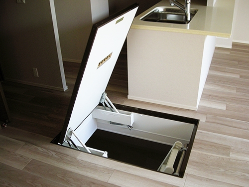 【納入事例レポート】あ、ここにも杉田エース!Vol.194新築ファミリーマンションに28個の床下開口ハッチとアルミ製床下昇降ステップを納入しました。なんと2畳もある床下収納スペースは「蔵」と呼ばれており人気です。