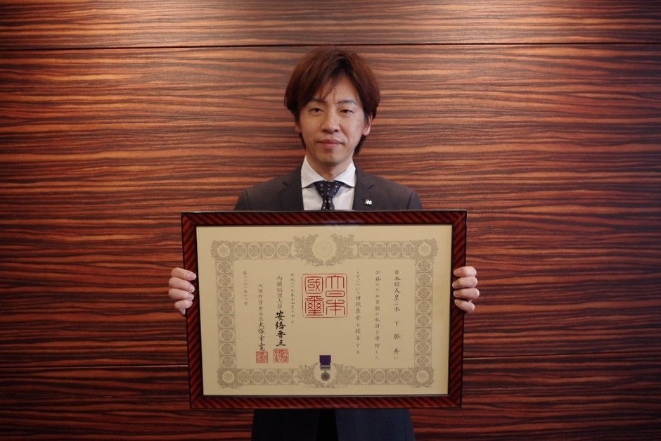 木下 勝寿は、平成28年に発生した台風10号の影響により甚大な農業被害を被った北海道芽室町に対し、「甜菜農業の復興」を願い寄付を行いました。このたび、その取り組みが認められ、紺綬褒章を受章いたしました。
