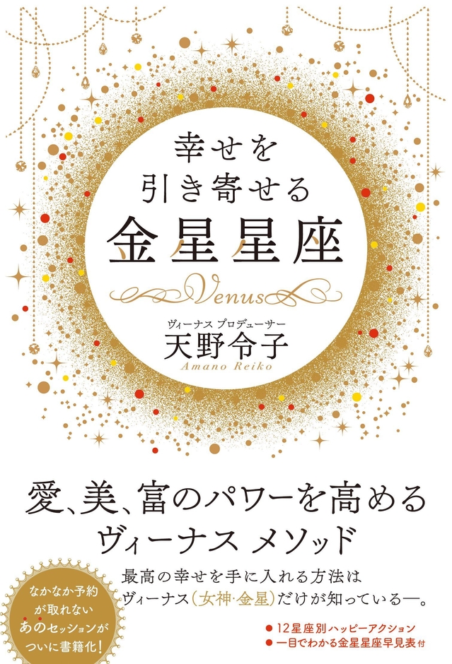 「結婚が決まりました」 「仕事で褒められる機会が増え成績も上がりました」など 半年先まで予約待ちの人気セッションがついに書籍化! 最近注目の”金星星座”を味方につけるヴィーナスメソッド大公開!