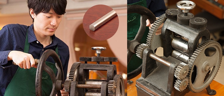 圧延ローラーで金属を伸ばし平らにする工程