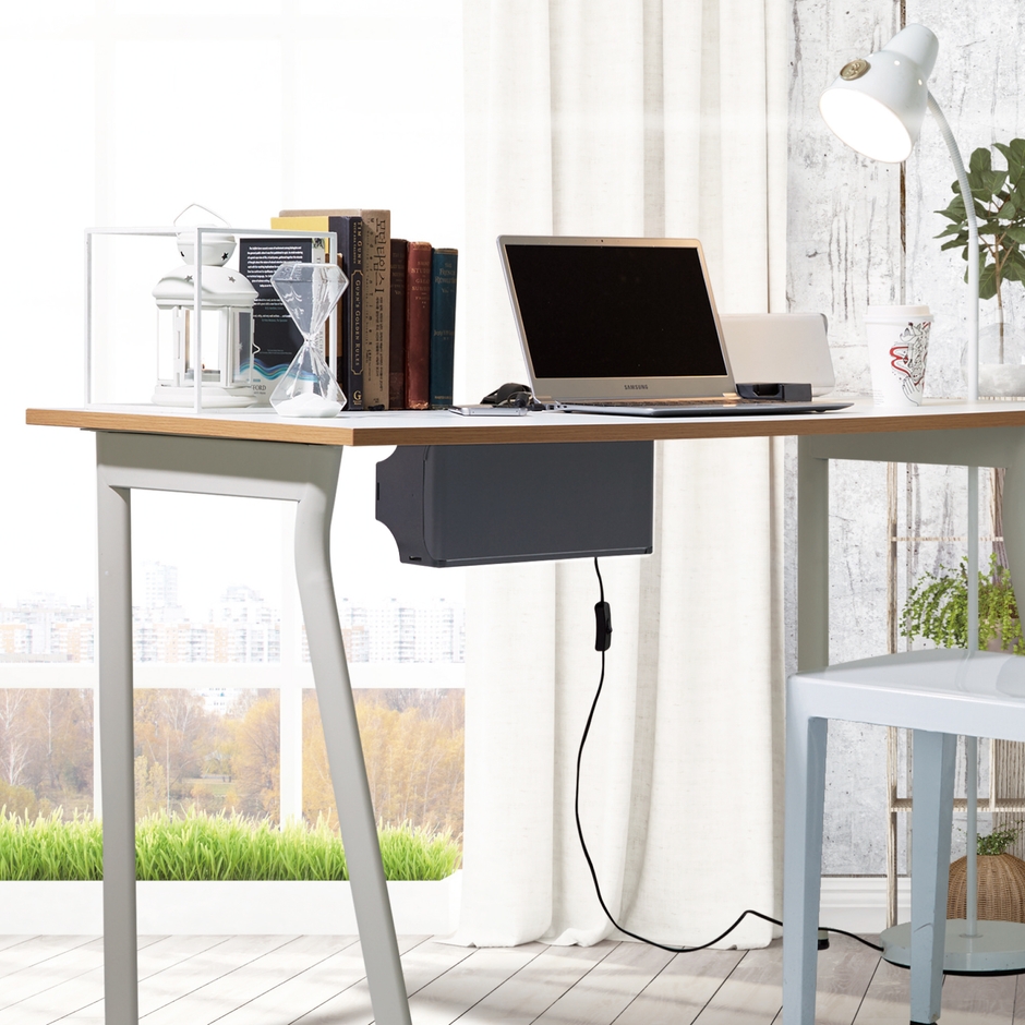 クランプ方式で様々なデスクに対応、自由に取り付け可能! デスク周りのケーブルをスッキリまとめる “浮かせて使う”ケーブルボックス「TAP-UP」を4月6日に発売