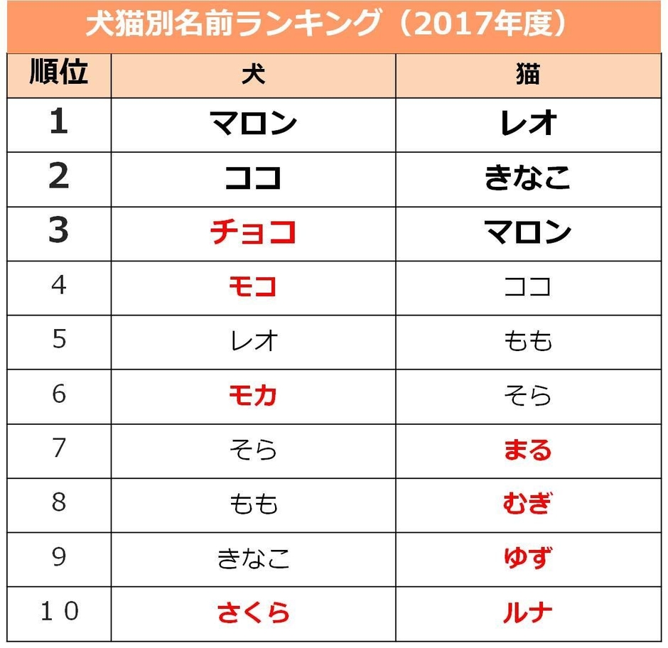アイペット損害保険株式会社(本社:東京都港区、代表取締役:山村鉄平)は、2017年4月1日~2018年3月31日に当社のペット保険にお申し込みいただいたペットの名前の集計を行いました。その結果、2017年度は犬は「マロン」、猫は「レオ」が1位となりました。