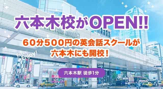 株式会社ワンコイングリッシュ(本社:東京都新宿区、代表取締役:兒嶋 裕貴)が運営する「ワンコイングリッシュ」は、2020年2月の三軒茶屋校のオープンに続き、4月6日(月)に11校舎目となる六本木校をオープンしました。