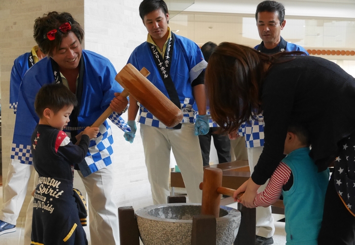 臼と杵を使い本格的な餅つきをお客様にご体験いただけます。ご試食用のお餅もご用意いたします。