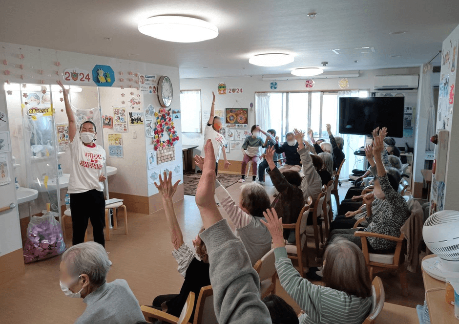 2024年5月には、当施設にてダンスレクリエーションを開催。地域で活躍するダンス講師より、“軽運動要素を取り入れたダンス”の指導が行われました。有限会社ノーマルライフと地域住民の共同による地域活性化ならびに介護予防の取組みです。
