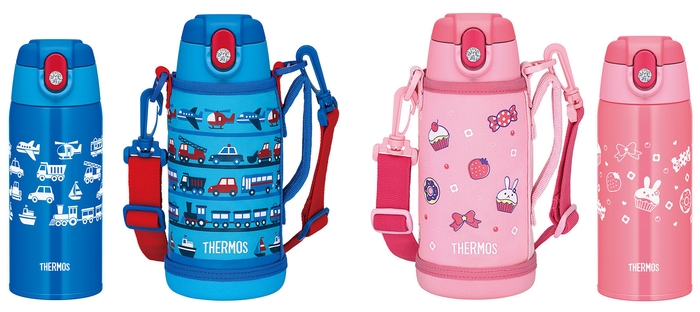 『サーモス 真空断熱2ウェイボトル』は、キャップを付け替えるだけで2通りの使い方ができ、未就学児から小学校低学年生を中心に人気のシリーズです。今回、より小さいお子さまでも使いやすいストロータイプの2ウェイボトルを新発売いたします。キャップを付け替えるだけでワンタッチ・オープンの保冷専用ストローボトルにも、保温・保冷どちらでも使えるコップ付きのボトルとしてもご使用いただけます。シンプル構造で、毎日のお手入れも簡単。小さなお子さまにも嬉しい幅広で肩にやさしいストラップ付きハンディポーチは丈夫なソコを採用。本体とポーチはお名前が書き込めるフリースペース付き。更に、幼稚園や保育園などでボトルをまとめて置いたときにも自分のボトルがすぐ探せるように、ボトルの天面に貼れるお名前シールも付属しています。容量はたっぷり飲める0.6L。スポーツ飲料も入れられます。