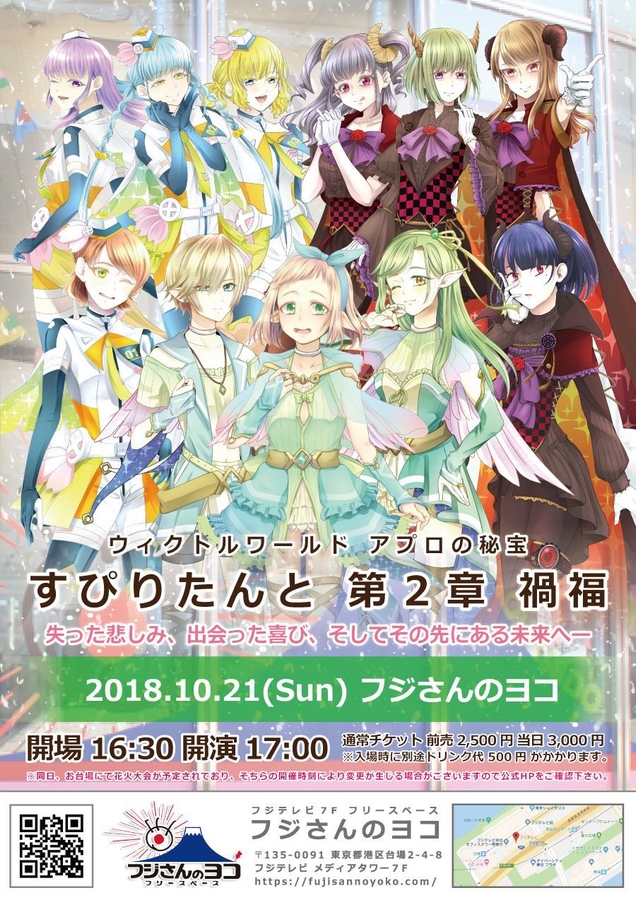 幻想物語企画制作委員会(運営:mio music entertainment)がプロデュースするアイドルグループ「ウィクトルワールド アプロの秘宝」は、デビュー半年の活動の集大成として、2018年10月21日(日)にフジテレビ本社屋7Fイベントスペース「フジさんのヨコ」にて、初の大型レコ発ワンマンライブ『ウィクトルワールド アプロの秘宝 第2章すぴりたんと禍福』に挑戦いたします。