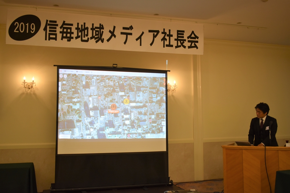 2019年11月8日(金)、信濃毎日新聞株式会社(長野本社所在地:長野県長野市、代表取締役社長:小坂 壮太郎、以下 信濃毎日新聞社)主催の「信毎地域メディア社長会」に、株式会社リアルグローブ(所在地:東京都千代田区、以下 リアルグローブ)代表取締役社長の大畑 貴弘が講師としてお招きいただき、「防災に利く地図とドローンの使い道」と題し講演しました。