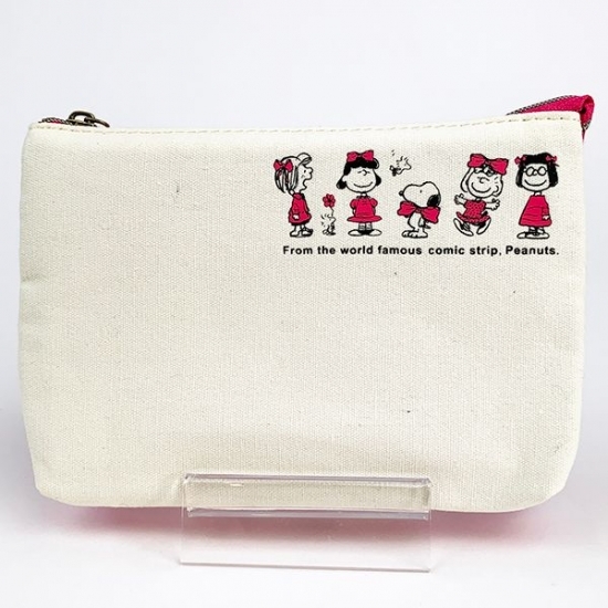 キャンバス地で使いやすい、3ポケットポーチです。アイボリーの帆布素材に、スヌーピーのコミック柄がデザインされています。