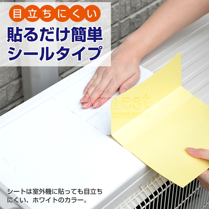 【エアコンの室外機を守ります】は、エアコン室外機の天面に貼るだけで太陽光(日射)を反射することにより冷房運転中の室外機の負担を軽くすることができます。