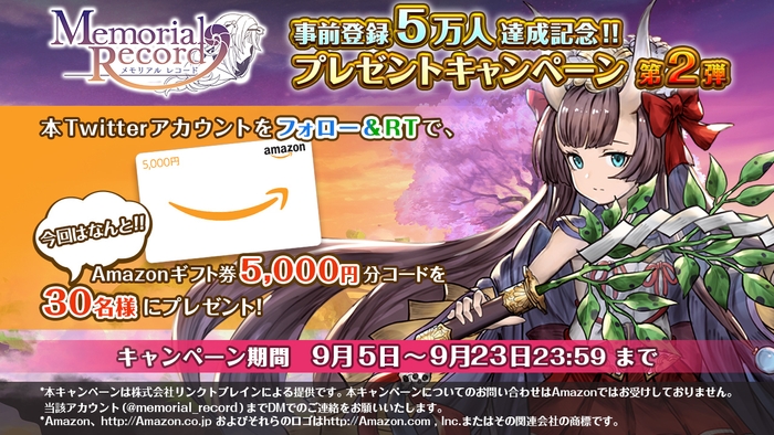「メモリアルレコード(Memorial Record)」の事前登録5万人達成! 追加キャンペーンやプレゼント企画第2弾が決定! 初公開ゲーム内映像も!
