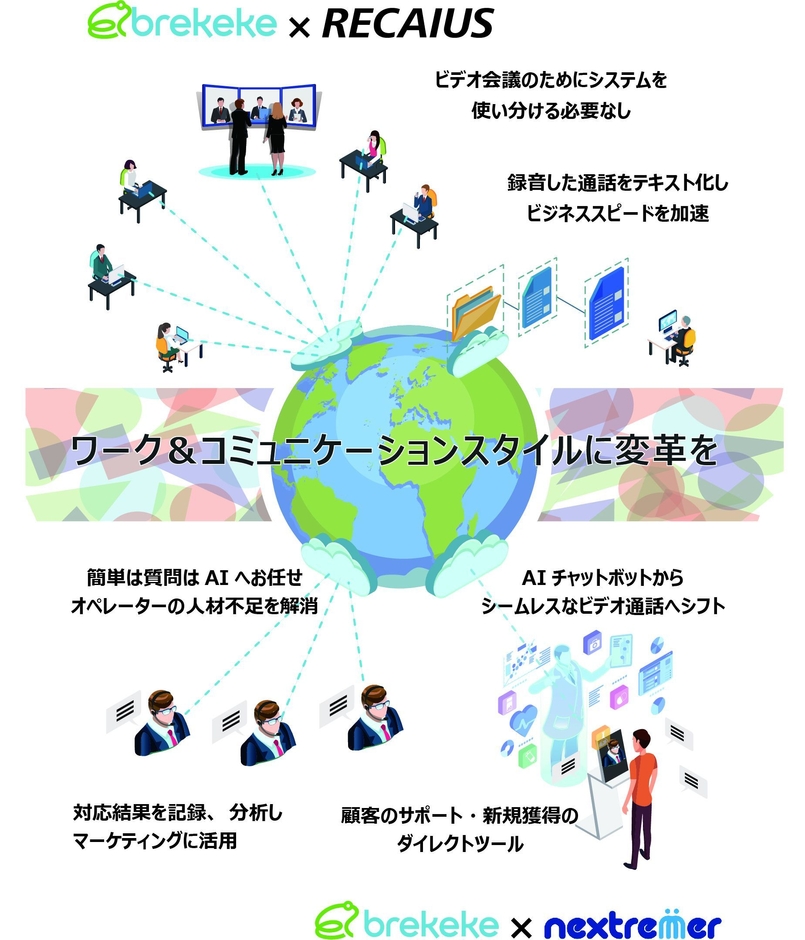 株式会社日本ブレケケ(本社:東京都豊島区、代表取締役:山出 晋)と株式会社Nextremer(本社:東京都板橋区、代表取締役CEO:向井 永浩)は6月13日から15日に幕張メッセで開催される「APPS JAPAN(アプリジャパン)2018」に共同出展いたします。本展示では、NextremerのAI対話システム『minarai(※1)』と『Brekeke PBX(※2)』によるビデオチャットを組み合わせた「対話AIからオペレーターへのシームレスな連携による顧客対応」のデモンストレーションを体験いただけます。