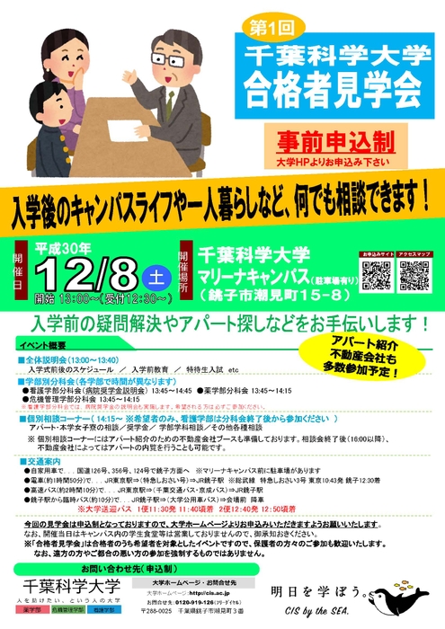 千葉科学大学 12月8日に第1回合格者見学会 キャンパスライフや1人暮らしのことなど何でも /これからの入試についての相談会を同日開催/事前申込制、保護者同伴者可