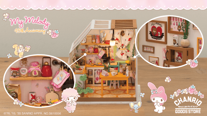 マイメロディ45周年の特別な限定デザインとあなたのちゃんりおがミニチュアハウスのパーツに一緒にプリントされたキットで、世界にひとつのDIYセットをあなたの手で組み立てることができます。