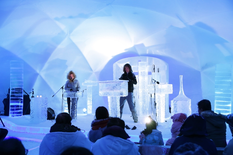 当コンサートで使用する楽器は、氷を削り出して制作され、奏でられる繊細な音色と、透き通った見た目が特徴的です。温度変化に左右されやすいため、コンサートに合わせて形を調整、一夜限りで使用されます。