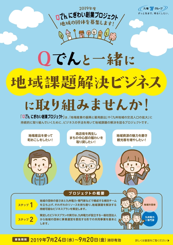 九州電力株式会社は、地域の皆さまと協働し、継続性のあるビジネスモデルを構築することで、地域の課題解決を図る「Qでん にぎわい創業プロジェクト」(以下、「プロジェクト」)を、本日より開始します。