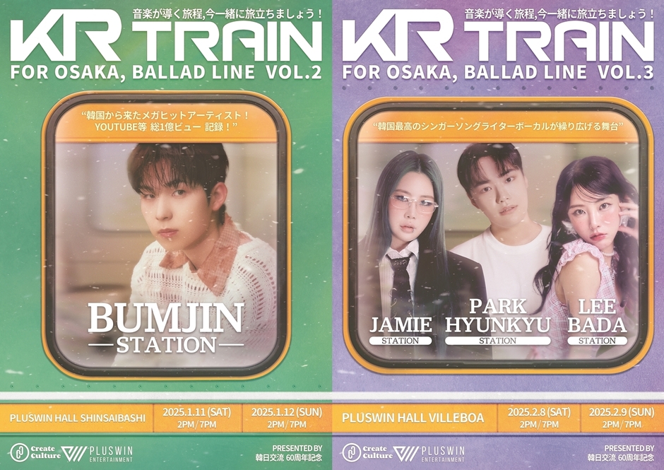 2025年1月から日本の大阪で「KR TRAIN FOR OSAKA、BALLAD LINE VOL.2」と「VOL.3」(コリアトレインフォー大阪、バラードラインボリュームツー、スリー)公演が開催されます。今回の公演にはボムジンを皮切りにジェイミー、パク・ヒョンギュ、イ・バダが参加し、音楽的多様性を見せてくれます。