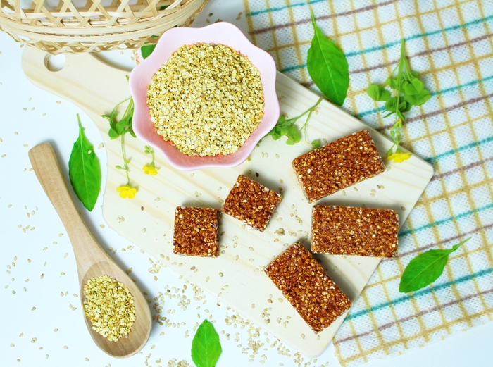 胡麻というと、歯に挟まりやすく食べにくいイメージがあり、敬遠されてしまうことが多い食材です。しかしゴマおからは擦り胡麻のように柔らかくつぶされた状態であるため、歯に挟まりにくく気軽に食べられるお菓子になっています。