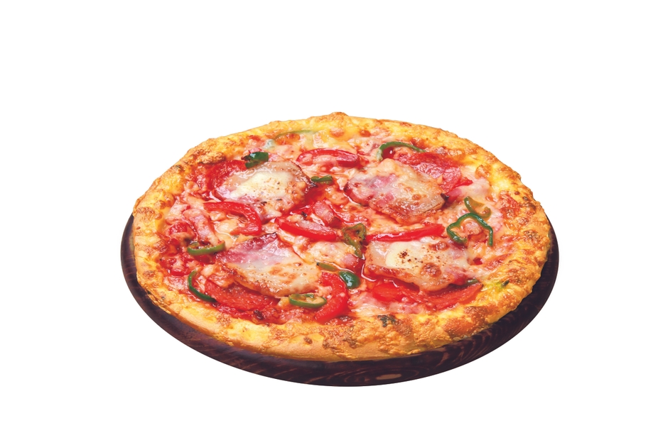 【商品特長】専用生地に、イベリコ豚の厚切ベーコン、熟成ベーコン、ぺパロニサラミの3種のミートをトッピングし、赤パプリカや ピーマン、オニオンのカラフルな野菜をトッピングした、見た目にも華やかで糖質を抑えたピザです。