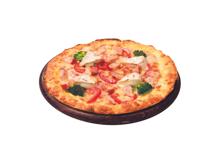 【商品特長】専用生地に、スモークチキン、ブロッコリー、カマンベールチーズをトッピングし、特製マヨソースで仕上げた、 カマンベールの風味とスモークチキンの香りが食欲をそそる、糖質を抑えたピザです。