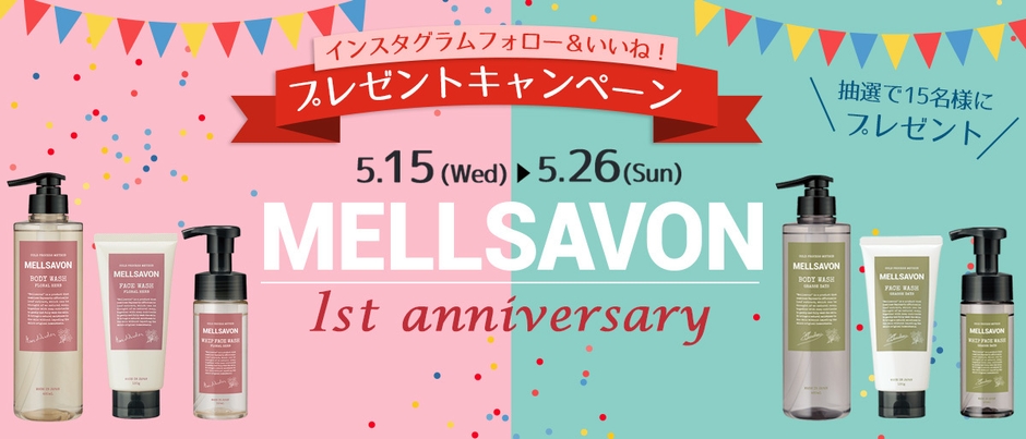 株式会社ジャパン ゲートウェイ(本社:東京都港区)が展開する、お肌を洗うこと・お肌にいいことと真剣に向き合ったスキンケアブランド『メルサボン MELLSAVON』はこの度、リニューアル1周年を記念し、公式Instagramアカウントにてプレゼントキャンペーンを2019年5月15日(水)より実施いたします。