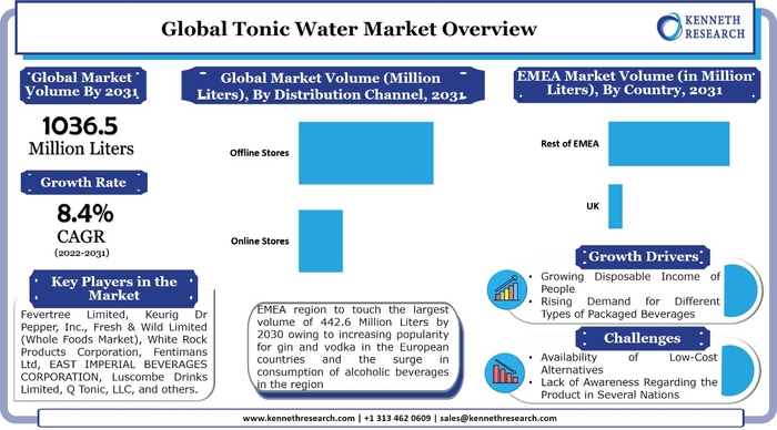 リサーチ・ネスターの一部門であるケネス・リサーチは最近、「トニック・ウォーター市場:グローバル需要分析と機会見通し2031」と題する調査レポートを発表し、これには、業界の成長ドライバー、抑制、需給リスクなどの著名な市場分析パラメータの一部と、COVID-19の影響、市場の成長に関連する最新のトレンドと将来の機会に関する詳細な議論も含まれています。