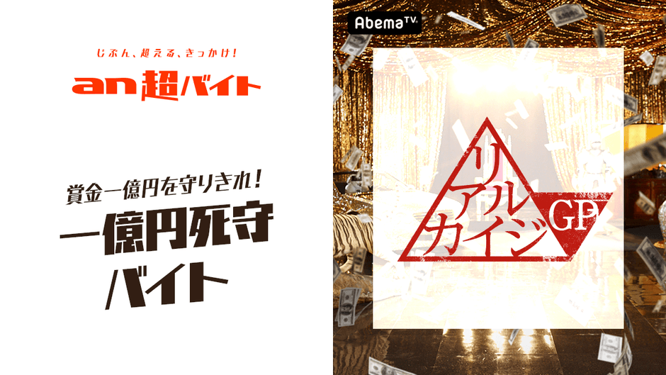 「an超バイト」×AbemaTV『リアルカイジGP』 日給は5万円だけど、一億円を守りきって人生逆転!? 一億円死守バイト募集!!