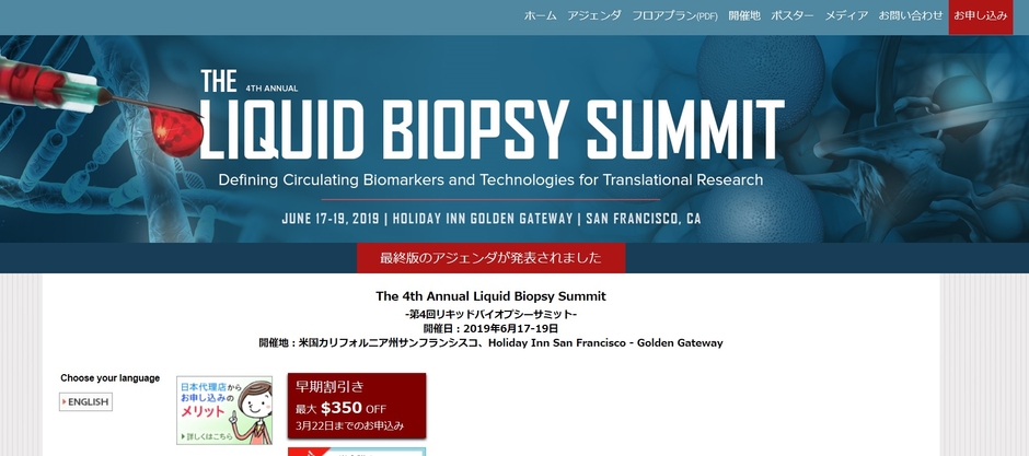 会議:「The 4th Annual Liquid Biopsy Summit-第4回リキッドバイオプシーサミット」
