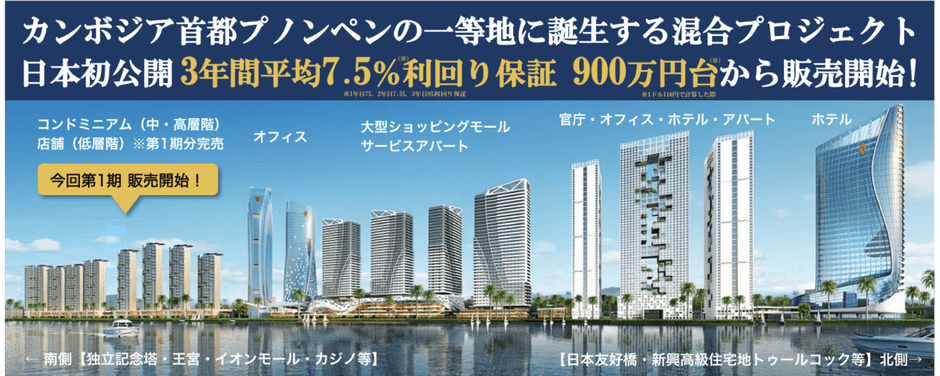 【IT×海外×不動産】をテーマに、海外不動産メディア事業、および海外不動産エージェント事業を展開する株式会社ビヨンドボーダーズ(本社:東京都新宿区、代表取締役:遠藤 忠義、以下 ビヨンドボーダーズ)は、カンボジア首都一等地に位置するプロジェクトの独占プロモーション契約を締結いたしました。また、それにともない11月中旬より、日本初公開となるセミナーを開催いたします。