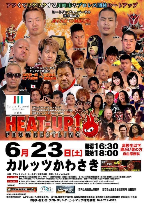 神奈川県川崎市を中心に活動するプロレス団体を運営するプロレスリング・ヒートアップ株式会社(本社:神奈川県川崎市、代表:田村 和宏、以下 ヒートアップ)は、かつて“川崎でのプロレスの聖地”であった川崎市体育館に当たるカルッツかわさきにて、様々なイベントを盛り込んだ「カルッツかわさき大会」を2018年6月23日(土)に開催します。
