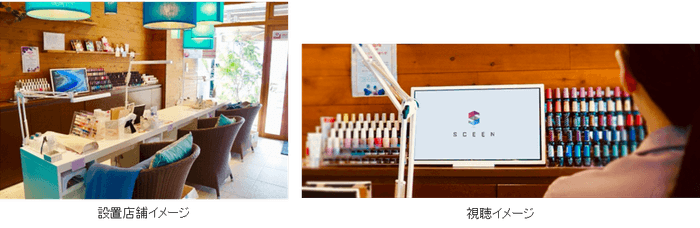 動画コンテンツでは、コンテンツパートナーとして、ソニーのニュースキュレーションアプリ「ニューススイート」および日本最大級のヘルスケア動画メディア「Lily」が提供する動画番組を予定しており、メイク・ヘルスケア・料理などの親和性の高いコンテンツを放映することで、ネイルサロンに来店する女性顧客の興味・関心を促し、広告の視認率の向上と購買意欲の喚起が期待できます。また、設置するネイルサロンのネイルデザインや商品を訴求する配信枠も用意しているため、店舗販促や顧客体験の向上、売上拡大などに役立てることが可能です。