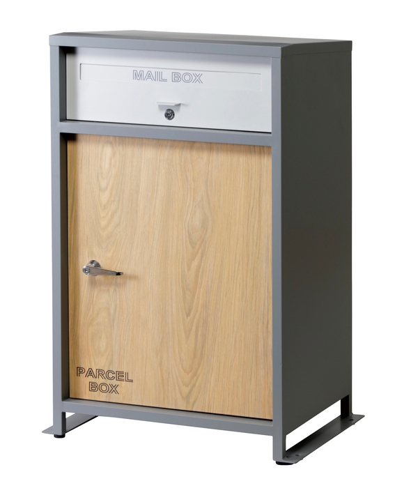 宅配ボックス『LUNO』は、大きな木目柄の扉と上部扉にワンポイントカラーを用いた個性的なデザインに仕上げており一般住宅はもとよりアメリカンテイストの住宅にも合わせやすい宅配ボックスです。