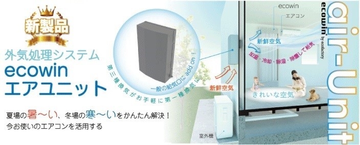 市販のエアコンと給気口に接続・設置するだけで温調・除湿・除塵 外気処理システム『ecowinエアユニット』を発売&発表会を開催
