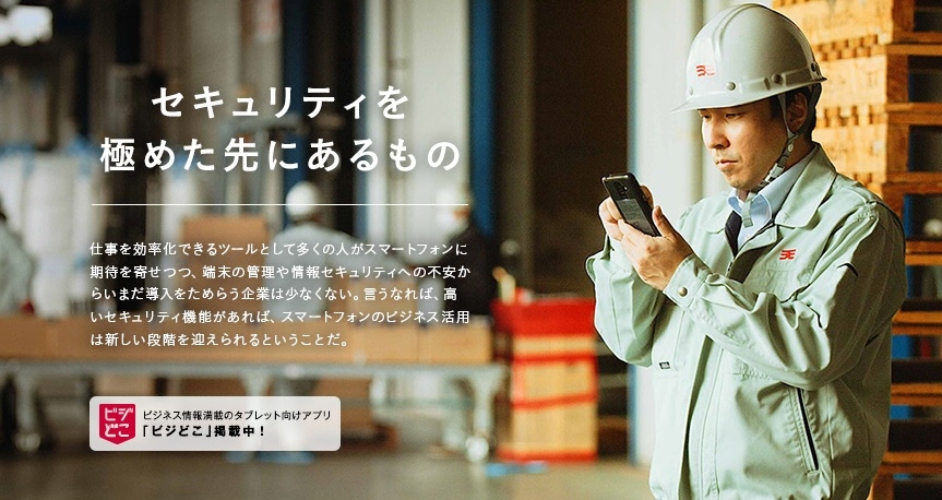 そこで、従来のスマートフォンに比べてコストやセキュリティに優れている、NTTドコモのビジネススマートフォン「F-04F」の導入を決定し、社外からでも社内にいるとき同様にメールやグループサーバーを使用できるようにしました。