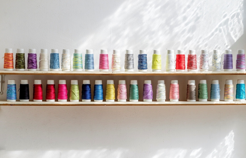 「コスモ」が手掛ける刺しゅう糸 全740種を一度に展示販売することにより、糸の種類や色の豊富さ、美しさを実際に見て、触れて、知っていただくことを目指します。