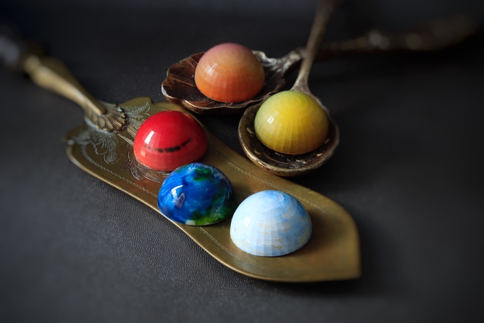 「今ここ」と名づけました。アイコンである手描きの地球のショコラ。生命が息づき、私たちと繋がっている、そんな想いを込めて描いています。