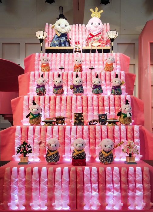 イベントステージの岩下の新生姜アルパカ五段ひな飾り