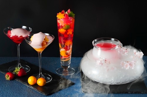 淡い恋心を表現した歌や、桜や紅葉等の四季をイメージした4首の歌をテーマに、フレッシュな果実や香りと 共にたのしめる、目にも鮮やかなカクテルや、幻想的な風景が浮かび上がるカクテル等、五感全体で味わえる、ドラマチックな和カクテルをご用意しました。