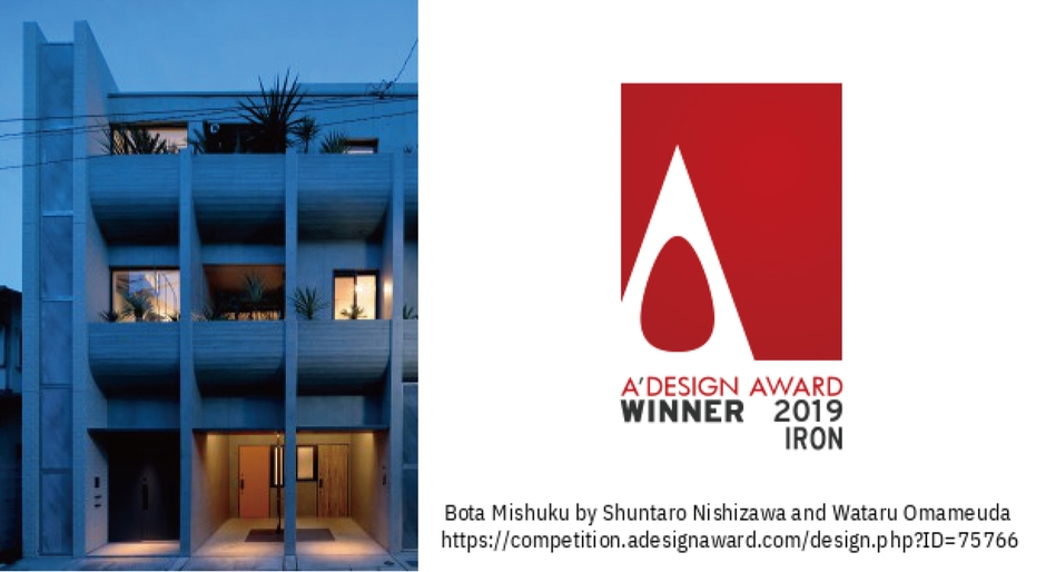 コーポラティブハウスを基幹事業としている不動産コンサルティング会社、株式会社コプラス(本社:東京都渋谷区、代表取締役:青木 直之)はこの度、自社で企画、設計・監理した「BOTA三宿」で、「A'DESIGN AWARD & COMPETITION 2019」において「Iron A' Design Award」を受賞いたしました。こちらは「2017年度グッドデザイン賞」に続き、二つ目の受賞となります。