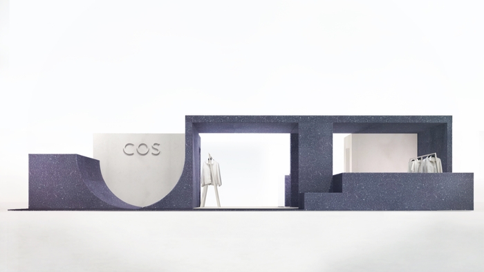 このスペシャルなポップアップストアは廃棄物問題に取り組むReally(リアリィー)のアップサイクルされたテキスタイルを使用してつくられており、熟考された機能的なCOSのデザイン美学がいたるところに存在しています。循環型のコラボレーションにフォーカスし、新しく生まれ変わらせたテキスタイルを使用することで、一時的なポップアップスペースに繰り返しリサイクルすることができるサステナブルなソリューションを生み出しました。