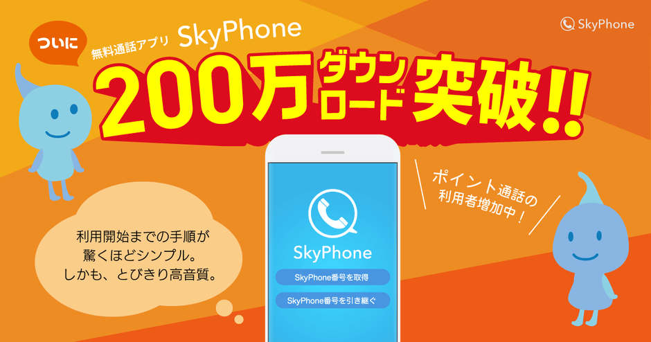 無料通話アプリではトップクラスの高音質! SkyPhone がついに200万ダウンロード突破!