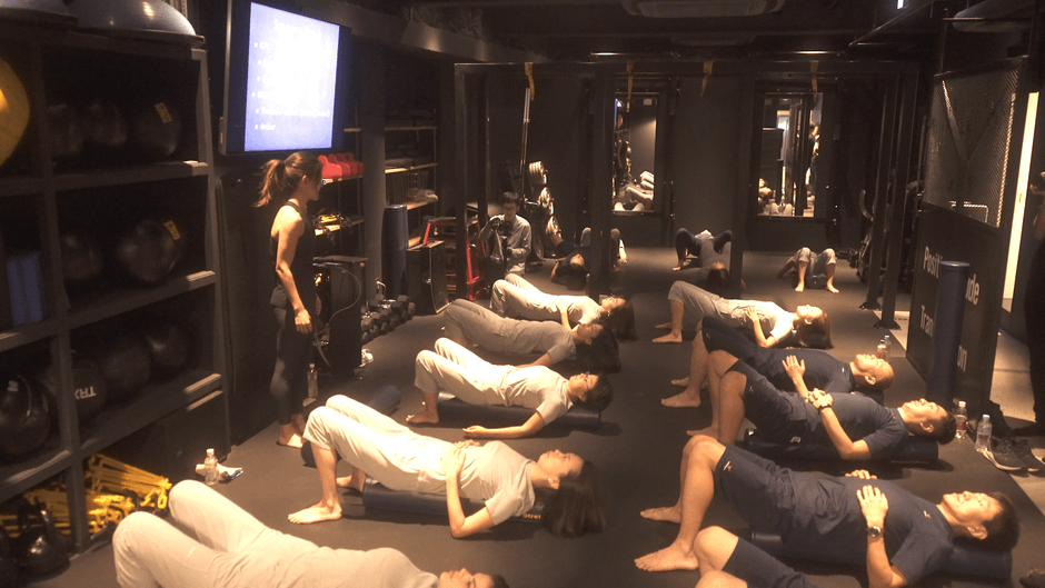 当日は、GRIT NATIONに集まった18名の男女が、ベネクス・リカバリーウェアの上下を着用し、GRIT NATIONのPerformance TherapistであるAtsukoが今回のために特別に用意したメニューを実践しました。
